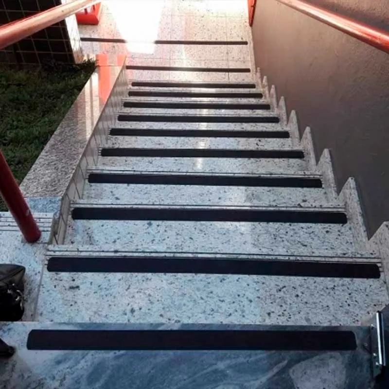 A fita antiderrapante pode ser aplicada em escadas, pisos, rampas, áreas externas, tapetes e até em locais industriais. Também oferecemos fita antiderrapante para tapete e adesivos antiderrapantes, perfeitos para superfícies menores ou pontos específicos que precisam de segurança extra.
